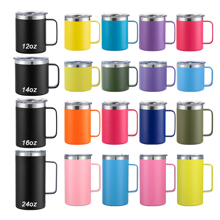 Logotipo personalizado 12oz 14oz 16oz 24oz doble pared vaso al vacío de acero inoxidable viaje camping aislado taza de café con asa